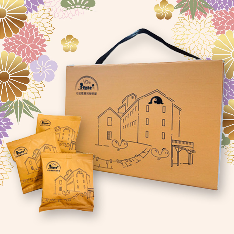 #禮盒尺寸:21.2x21.2x8 cm (附贈大平口紙袋) #內容物:蔓越莓5入、葡萄乾5入、咖啡4入、檸檬4入、鐵觀音4入
