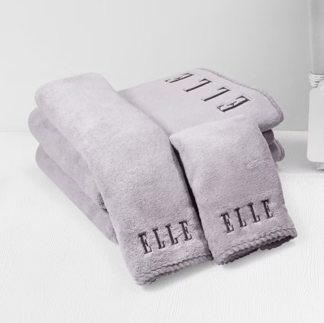 ELLE法式時尚無棉絮超吸水抗菌毛、浴巾2入組-暮光紫
