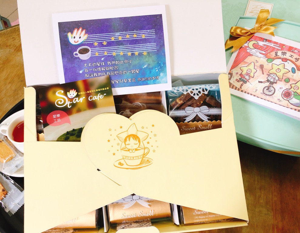 「星樂工坊」長期培育自閉症青年咖啡、飲品調製、手作烘焙餅乾的就業力,以及提供其生活自理、社會適應的訓練。一片餅乾、一杯咖啡,都是幫助星星兒自力與社會更融合的支持。感謝您購買餅乾禮盒,我們會將這筆金額用於「星樂工坊」培育星星兒及訓練就業力的經費使用。