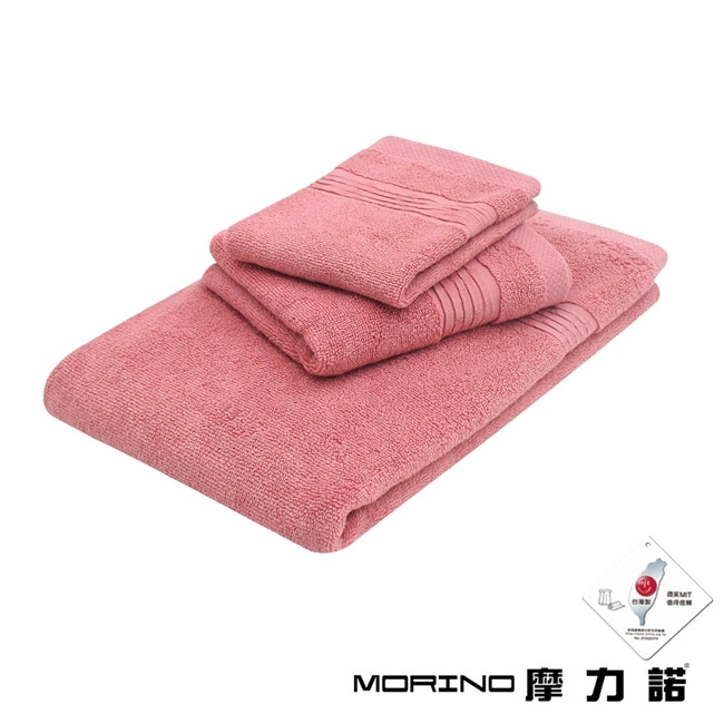 Morino美國棉五星級緞檔方毛浴巾禮盒組(豆紅)