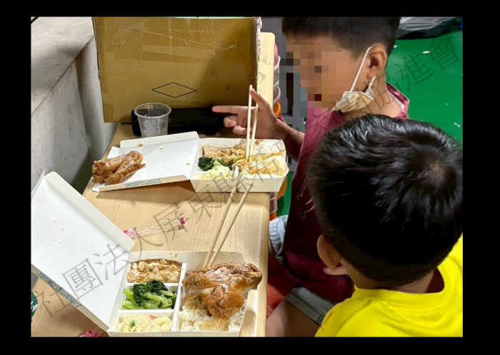 用餐時,一位學童跟老師分享他的生活趣事٩(๑•̀ω•́๑)۶