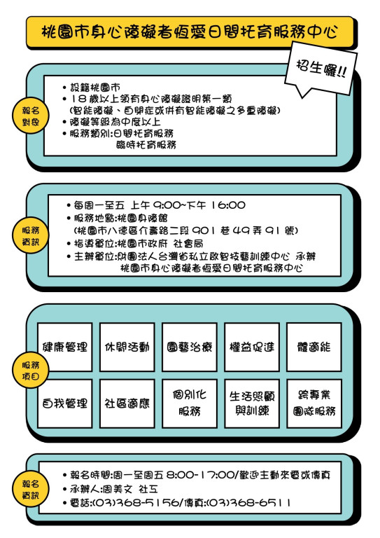 【桃園市身心障礙者恆愛日間托育服務中心招生中】