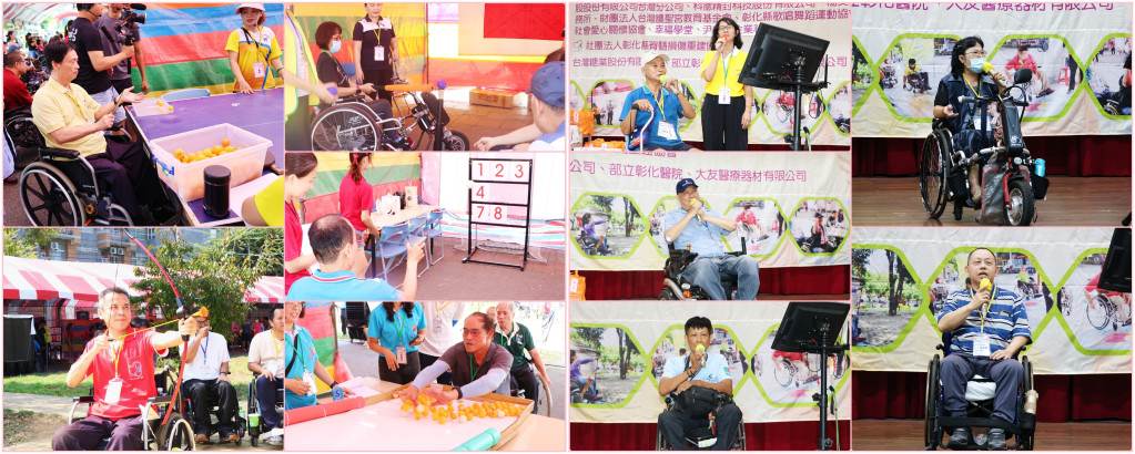 此次趣味競賽於場內外共二十五個項目,都是以脊損者能力來考量設計,希望在居家或戶外空間,都能輕鬆運動以達到活絡身體之目的,我們將各種運動項目如「槌球、射箭、冰壺、滾球、飛標、棒球、保齡球、高爾夫球、桌球、乒乓球、籃球、飛盤、布袋球」…等,重新設計並改變玩法,讓傷友們坐在輪椅上能輕鬆體驗趣味的運動;並針對手部功能不佳的頸髓傷友,設計了「套圈圈、拍拍彈飛樂、推推保齡球、桌上冰壺計分賽、乒乓球九宮格、滾滾彈珠台、敲敲投石、三公尺吹箭、桌上滾球、彈弓憤怒鳥」等,讓高位頸髓傷友們能一起同樂,還有以強化傷友心肺能力為目標的「身障者卡拉OK歌唱大賽」,希望透過各項趣味活動與歌唱引導身障者回歸正常生活,增進傷友彼此的情誼,相互交織出滿滿的生命正能量。