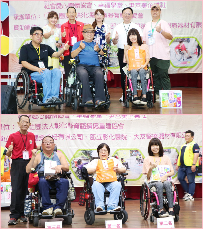 活動在滿滿的笑聲與掌聲中圓滿落幕,傷友們帶著獎品與伴手禮滿載而歸,由衷感謝彰化縣長王惠美、社會處長王蘭心、埔心鄉長張佩瑩、花壇鄉長顧勝敏、永靖鄉長魏碩衛、及埔心鄉民代表會主席黃坤鼎等長官,持續在身心障礙者的福利政策上提供多元資源挹注,讓身障朋友們擁有展現自我的平台,也感謝參與此次活動的主辦單位,包括「台灣泰德軾股份有限公司、鹿港電器股份有限公司、彰大電機工業有限公司、晨陽興業有限公司、蔡鴻榮三副團長、彰化縣圓夢行善團、寶珍香食品有限公司、立居富股份有限公司、瑞振工業股份有限公司、震旦行股份有限公司、彰脊顧問團」等的協助,以及各協辦單位、贊助單位的支持,以及全場協助服務的志工們,有「彰脊志工隊、彰化縣意集棒行善會、彰化縣新住民發展協會、彰化縣歌唱舞蹈運動協會、國泰人壽彰美通訊處」的大哥、大姐們,有您們的鼎力相助才能讓活動順利完成。特別感謝歌唱比賽評審詹彩均老師、江建德老師、李易新老師協助此次活動;最後感謝兩位美麗動人的主持人詹秀貞縣府秘書、楊美玉顧問,您們精湛的場控能力,笑容滿面且風趣幽默,讓活動氣氛熱力四射、充滿溫馨,辛苦您們了!