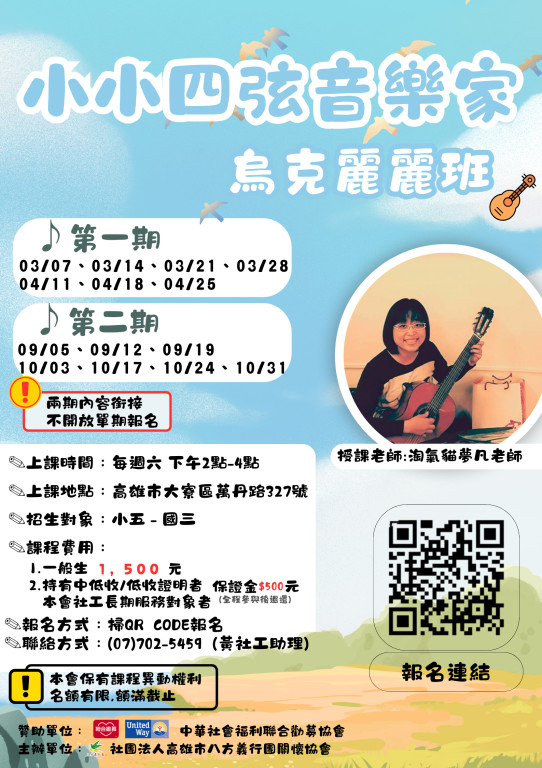 小小四弦音樂家|週六烏克麗麗班(小五~國三)