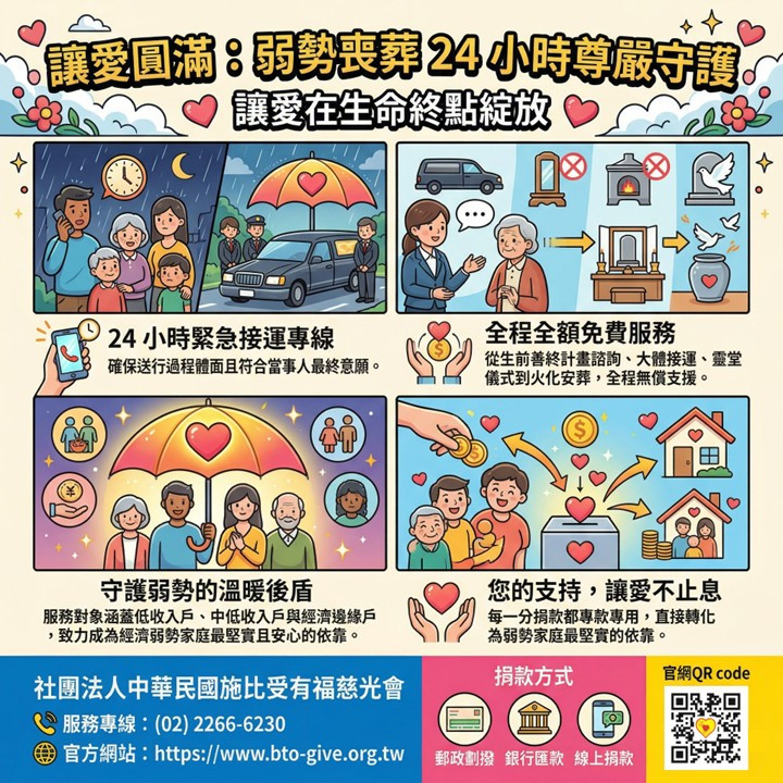 #讓愛圓滿 #弱勢喪葬 #尊嚴守護 #24小時緊急接運 #全額免費喪葬 #愛不止息 #施比受有福慈光會 #教育補助 #社會福利 #愛心捐款 #公益活動