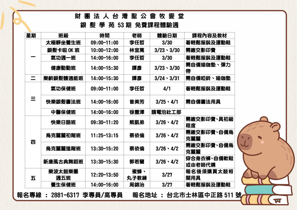 銀髮學苑第53期體驗週海報