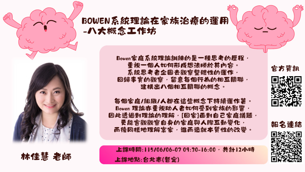 2026 Bowen家庭系統理論在家族治療的運-八大概念工作坊 開課囉!