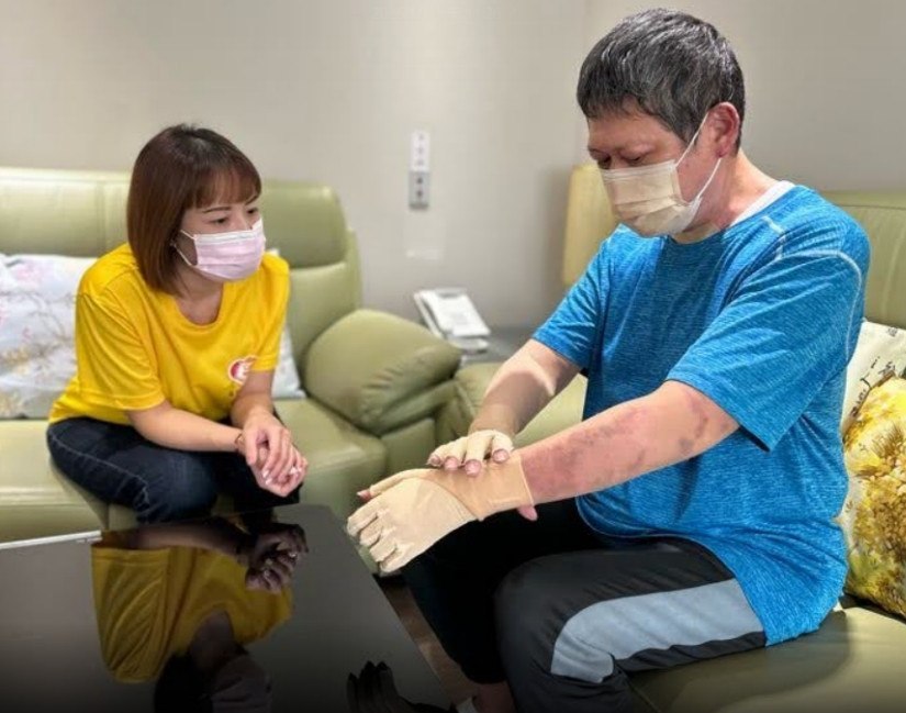 出院後,他因重傷暫以輪椅代步,雙手燒傷吃飯、洗澡都無法自理。但為了妻小,他沒有一天放棄,天天到陽光基金會復健。然而,阿宇最沉重的壓力並非身體的傷,而是家園燒毀、收入中斷,太太打臨工苦撐家計,還得照顧他與三個孩子。他最擔心的,是復健這段期間,孩子的生活與家裡的開銷該怎麼辦?