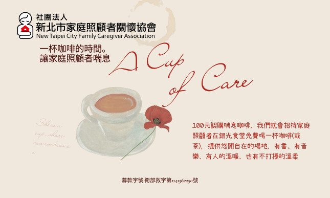 認購喘息咖啡,100元給家庭照顧者一杯咖啡的時間喘口氣~