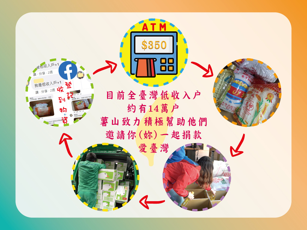 一份愛心物資包 350元,或許對你來說只是一頓晚餐、一場聚會,卻能成為一個家庭的溫飽,帶來一整個月的安心。