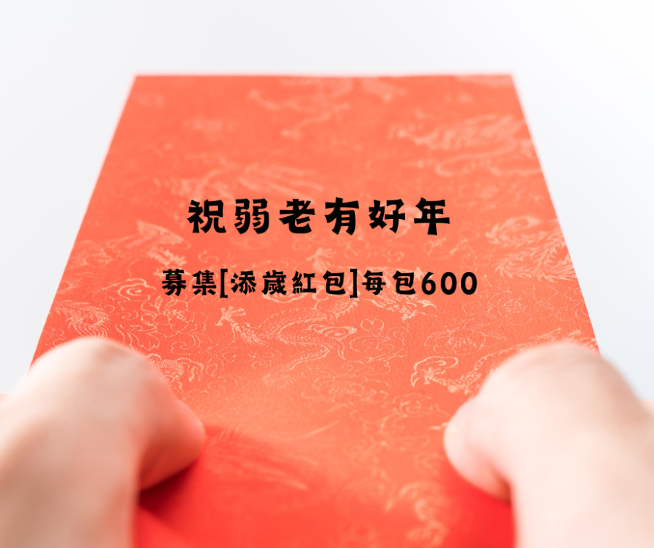 支持並認捐弱老紅包,每包600元,於歲末年節前由協會發送給支援系統薄弱的長輩。