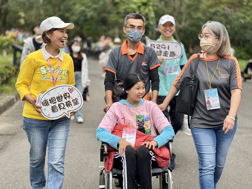 喜樂家族以健走方式協助身心障礙者及其家庭走出戶外,讓社會大眾有機會接觸與認識他們,以促進社會關懷與融合。