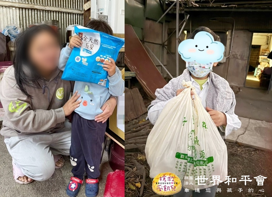 (2)愛心食物包:您的 1,000 元能換來一個孩子整個月的飽足與笑容。每一份價值 1,000元 的食物包(兒童成長奶粉、三合一麥片、白米、麵條、健康口糧…等),都是經過精心挑選的營養補給,補足這些家庭最迫切的缺口。