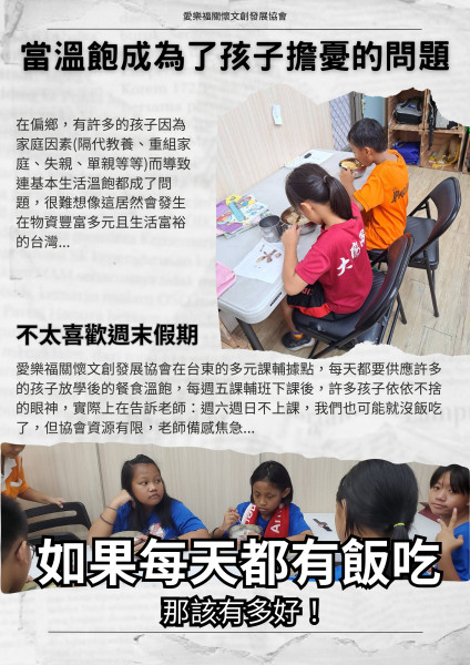 【1】在偏鄉,有許多的孩子因為家庭因素(隔代教養、重組家庭、失親、單親等等)而導致連基本生活溫飽...